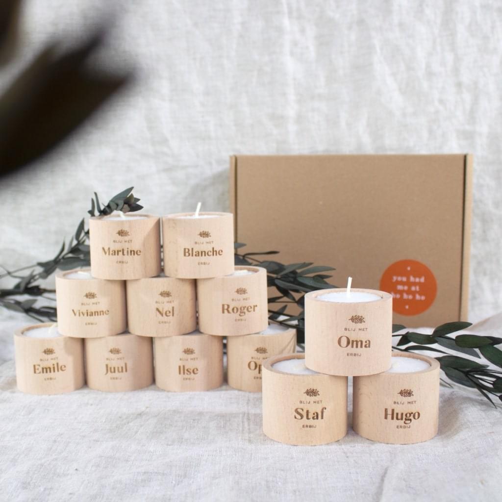 Gepersonaliseerde houten kaarsjes (set van 12)