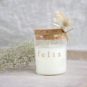 Potje kurk met kaars gegraveerd