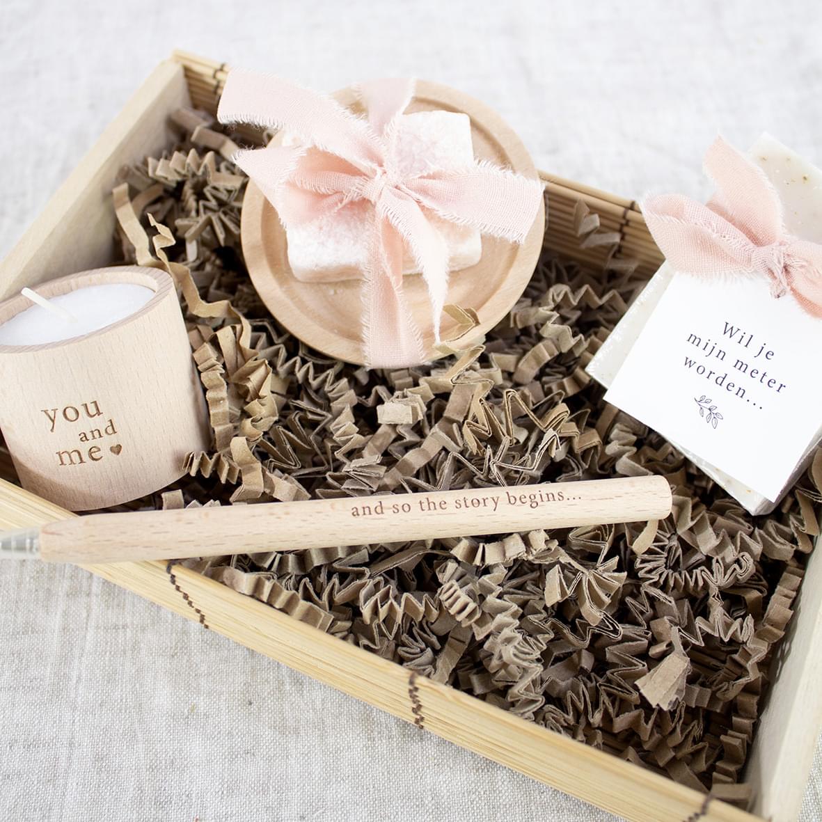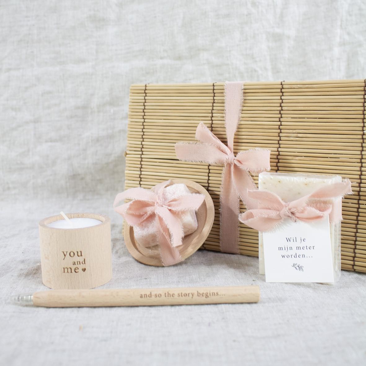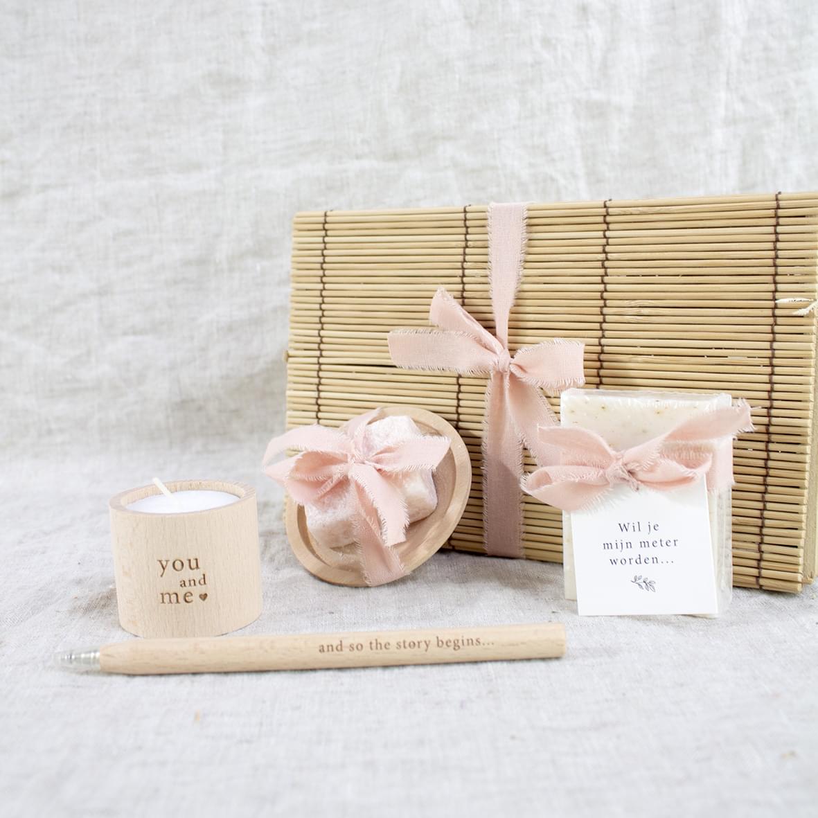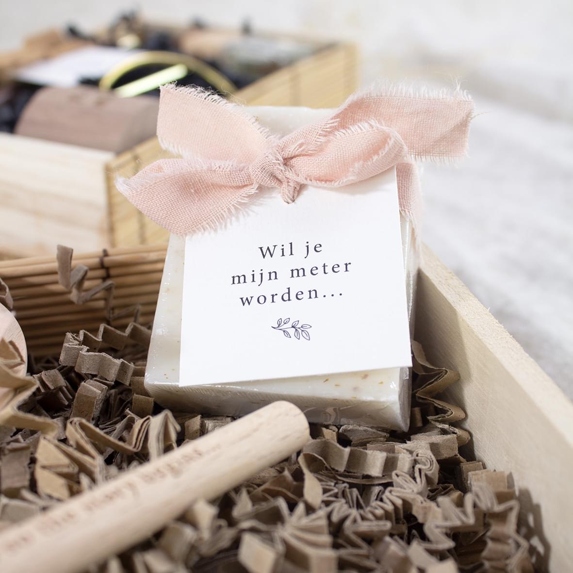 – Zeepje nature met kaartje “Wil je mijn meter worden”