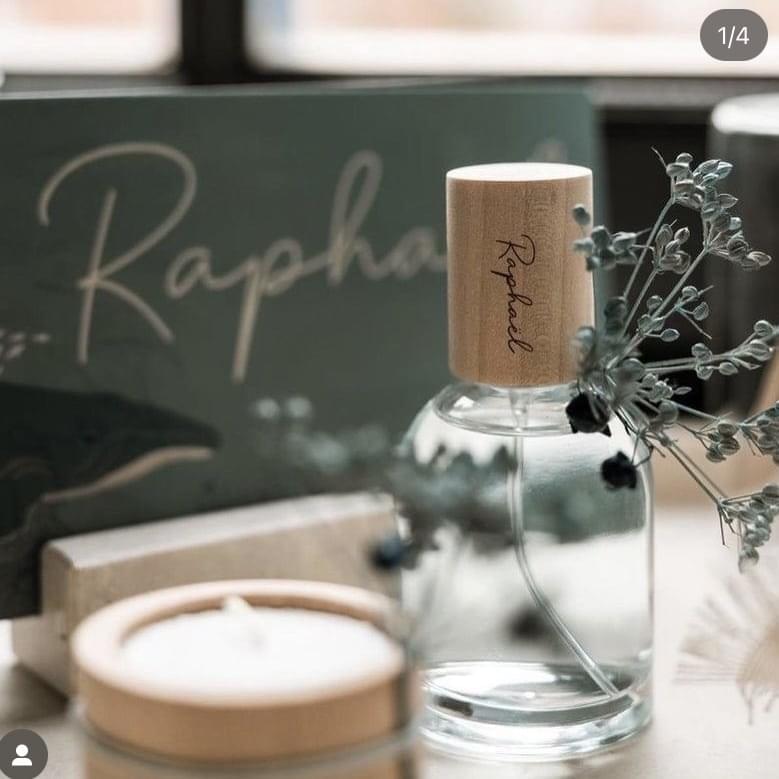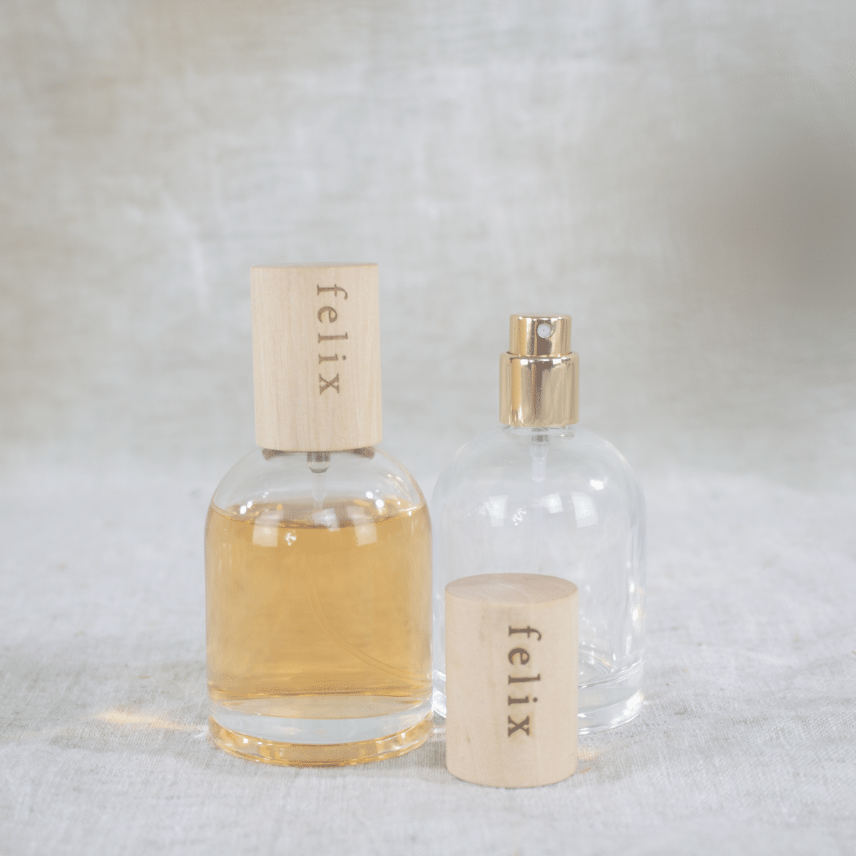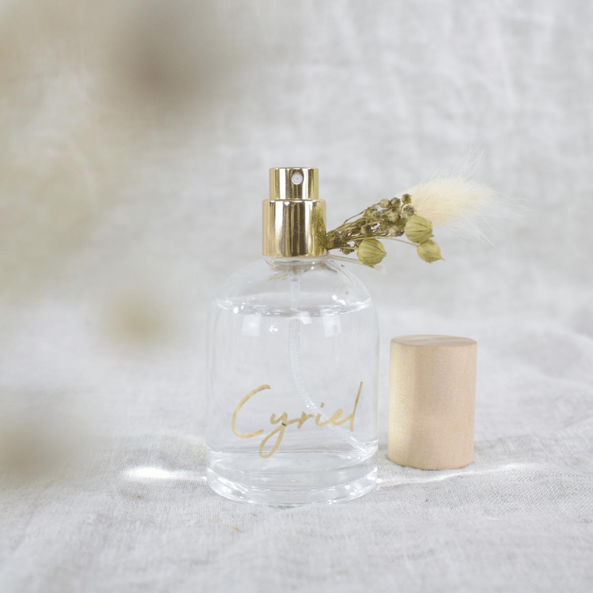 De sprayer is van subtiel goud en kan je mooi afsluiten met een houten dop.