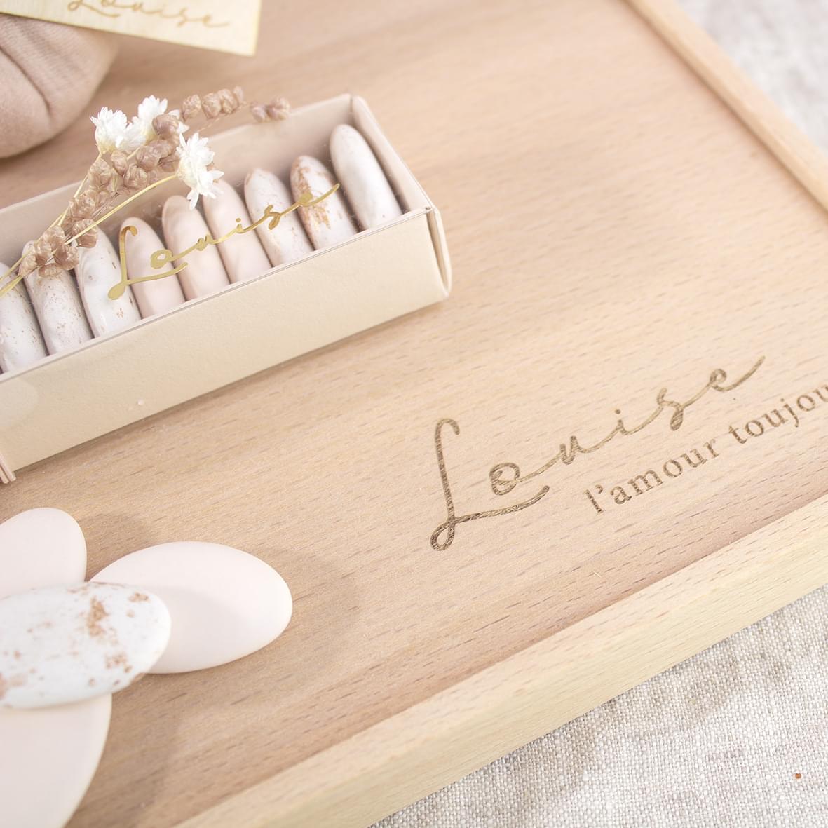 En om het helemaal af te maken, kan je de tray laten graveren met een persoonlijke boodschap.