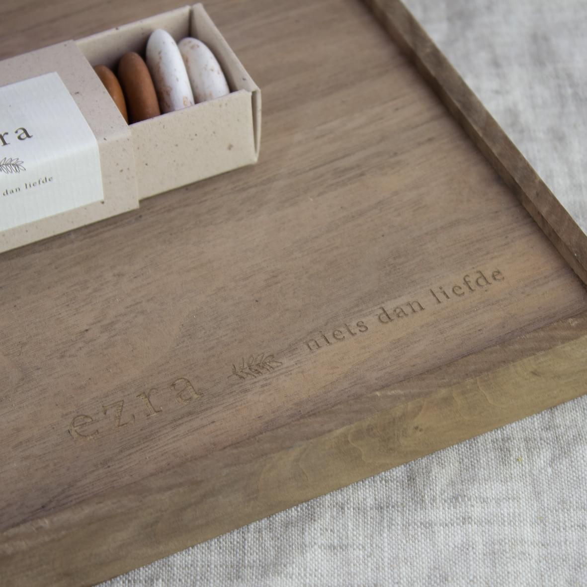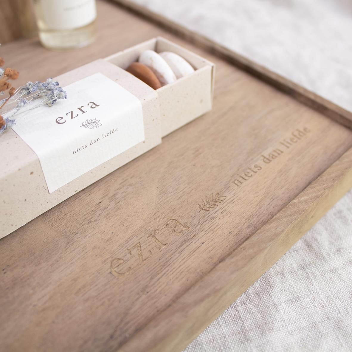 En om het helemaal af te maken, kan je de tray laten graveren met een persoonlijke boodschap.
