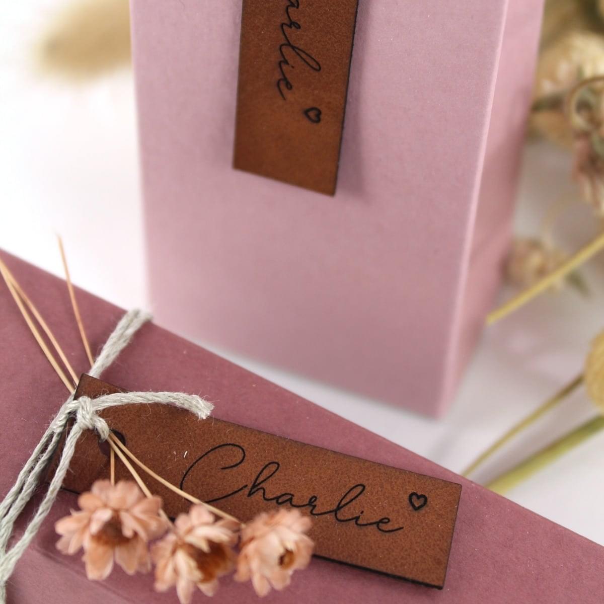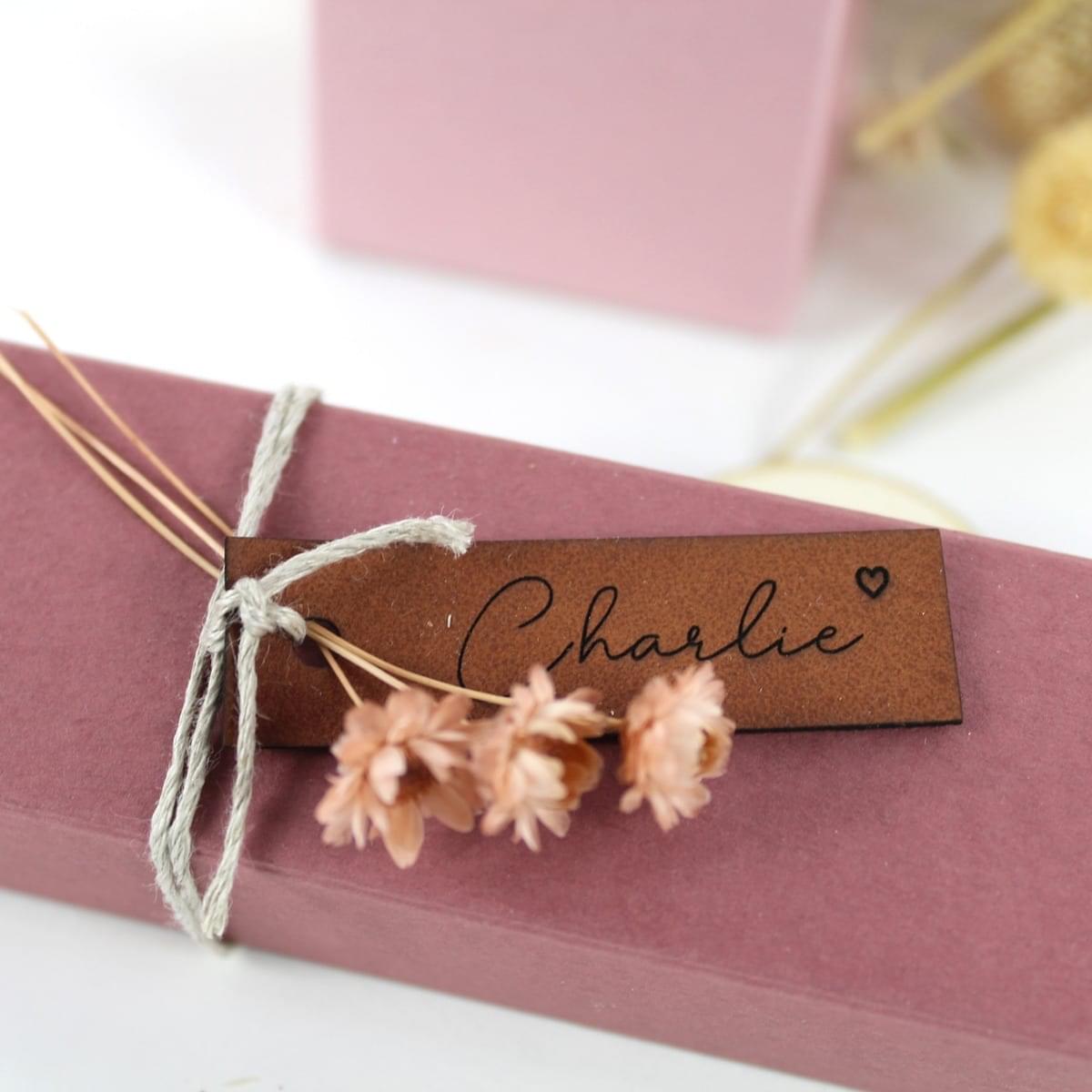 Label leer small brown- gegraveerd