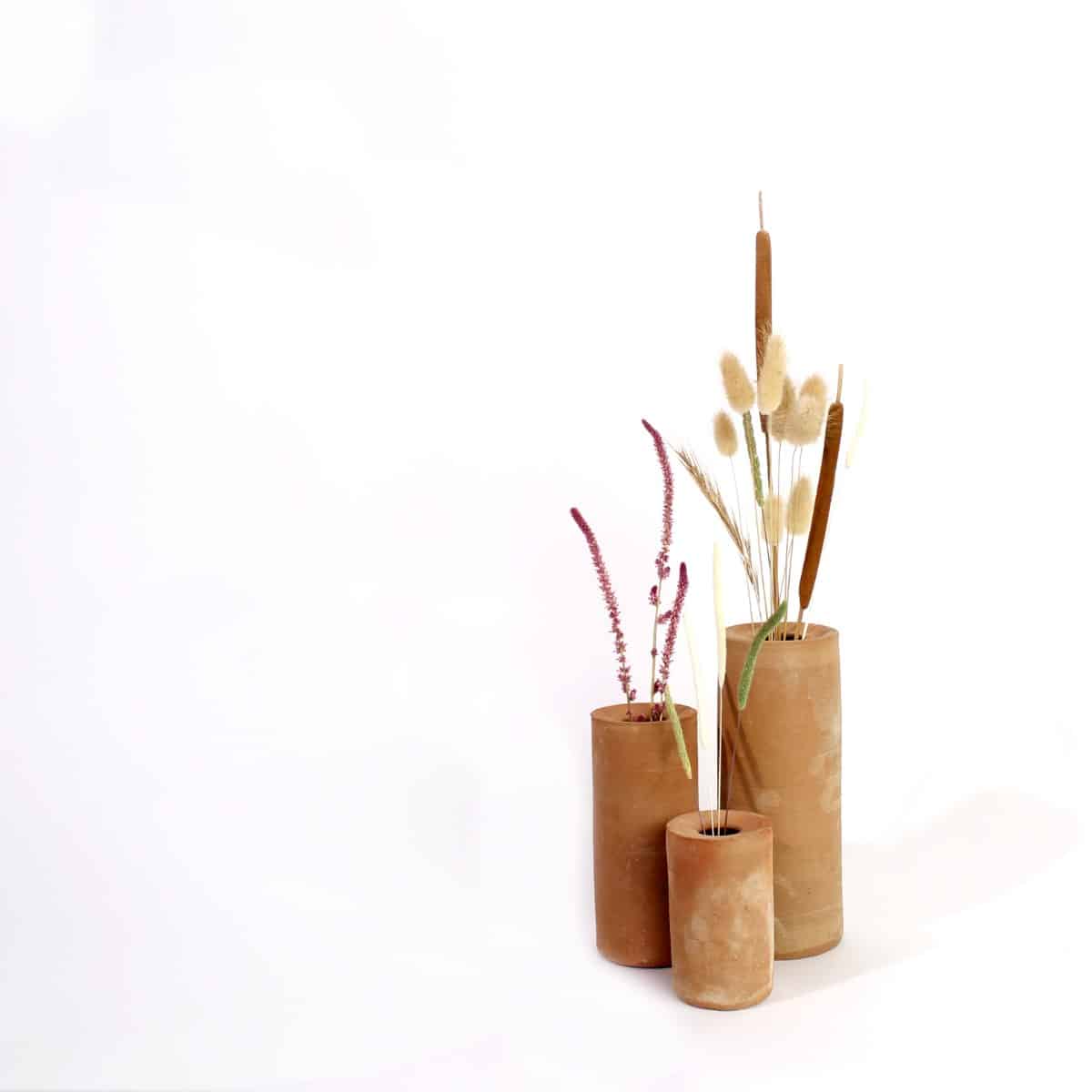 Set van 3 vaasjes in terracotta.