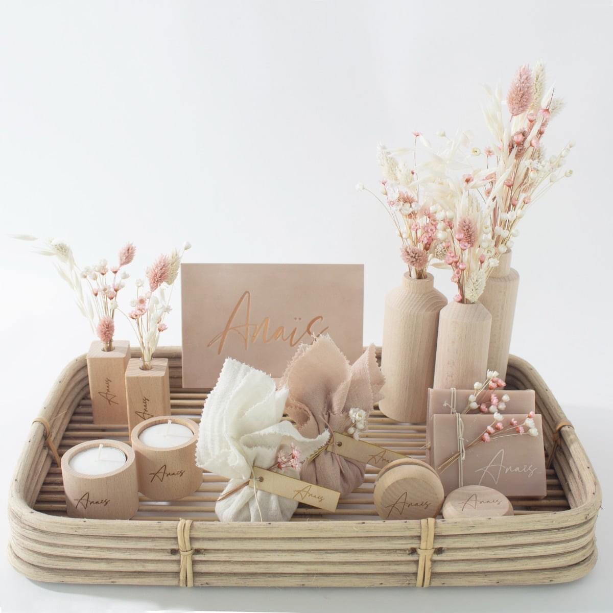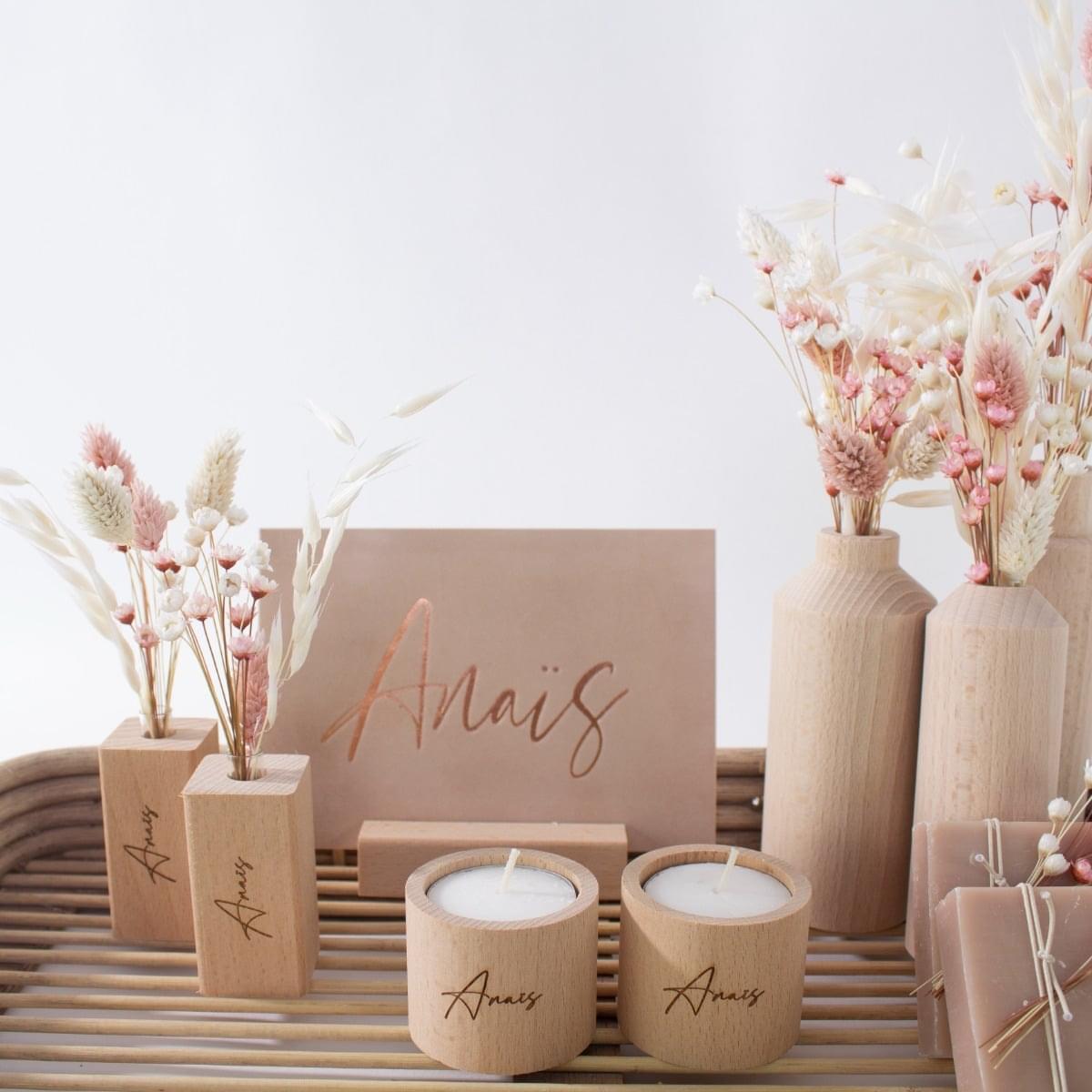 Combineer met de houten kaarshouders en de kaarthouder in hetzelfde hout.