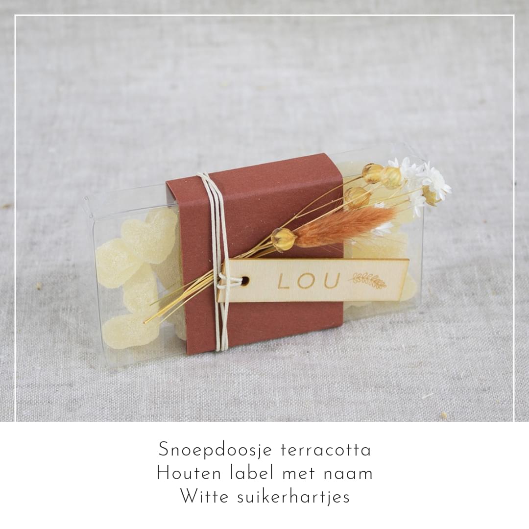 – De afwerking van de uitdeelcadeautjes is niet inbegrepen. Je ontvangt alle nodige materialen en steekt dus zelf alles in elkaar.