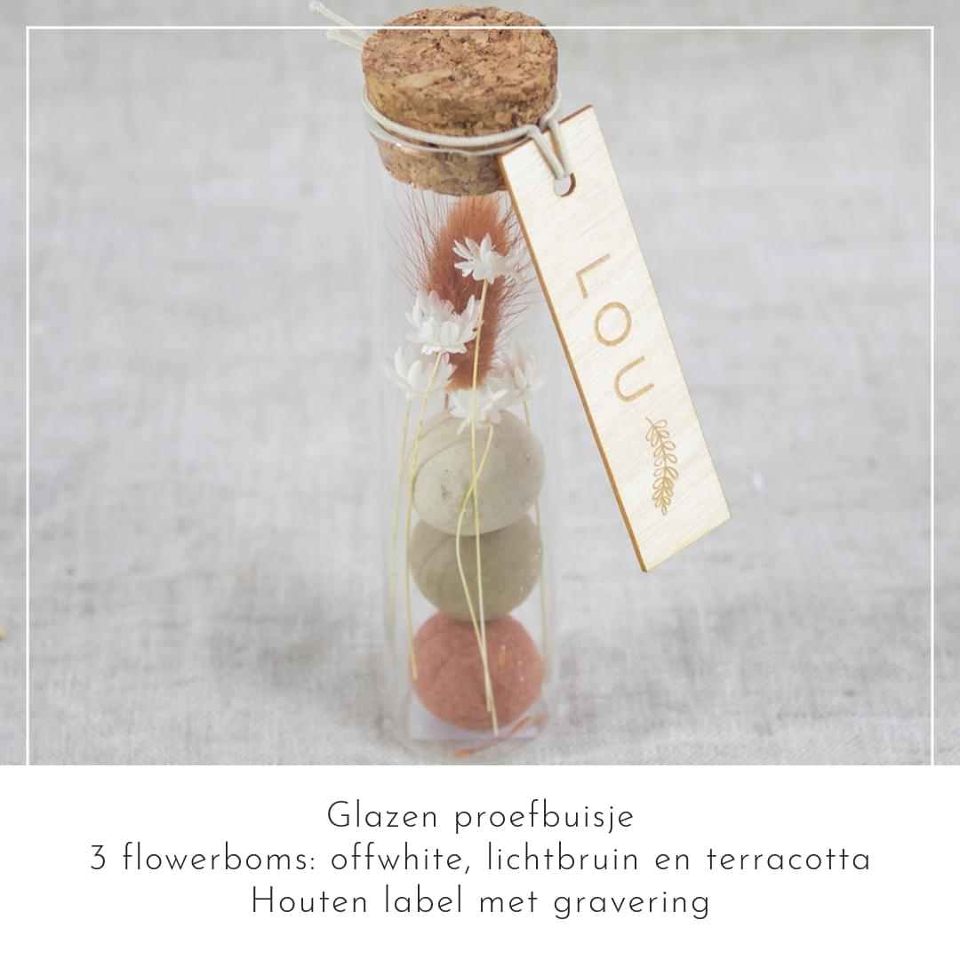 – Droogbloemen (zie foto’s) -> voldoende om al je attenties af te werken + mini boeketje te maken om in een vaasje te steken.