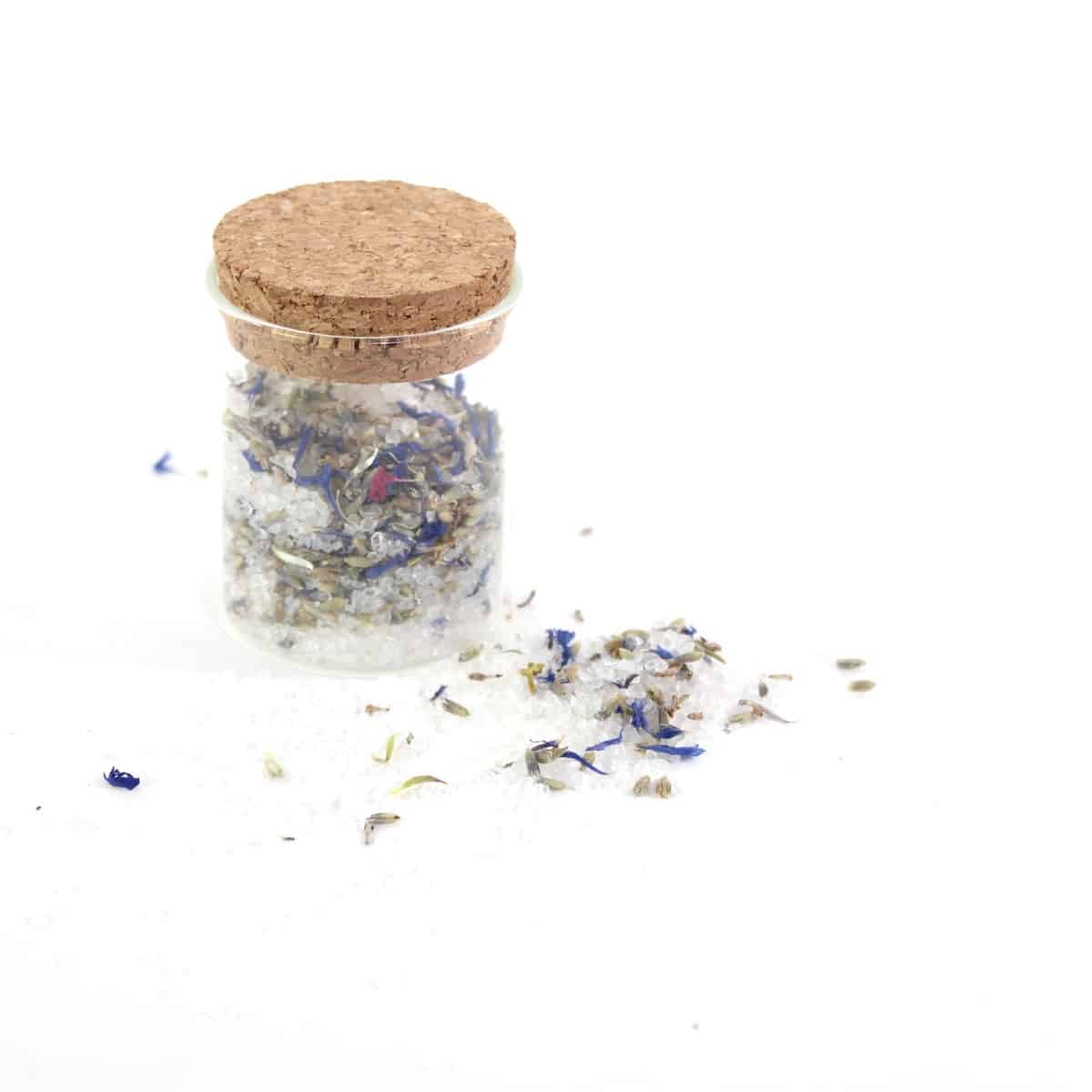 Met dit badzout kan je ongeveer 15 – 20 potjes met kurk vullen of ongeveer 20 -25 proefbuisjes