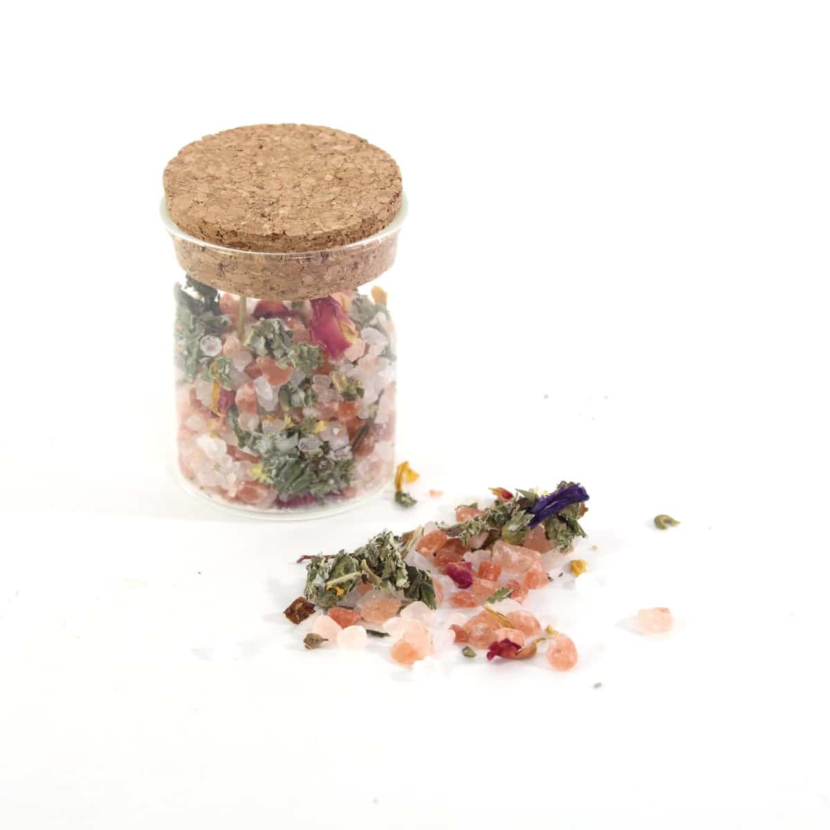 Met dit badzout kan je ongeveer 15 – 20 potjes met kurk vullen of ongeveer 20 -25 proefbuisjes