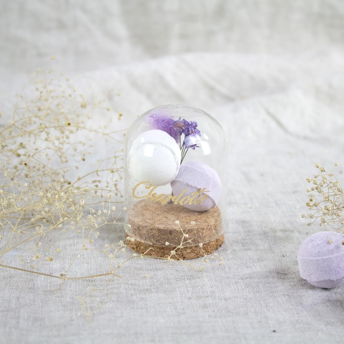 Deze schattige mini bruisballen komen het mooist tot z’n recht in een glazen stolpje of glazen potje kurk