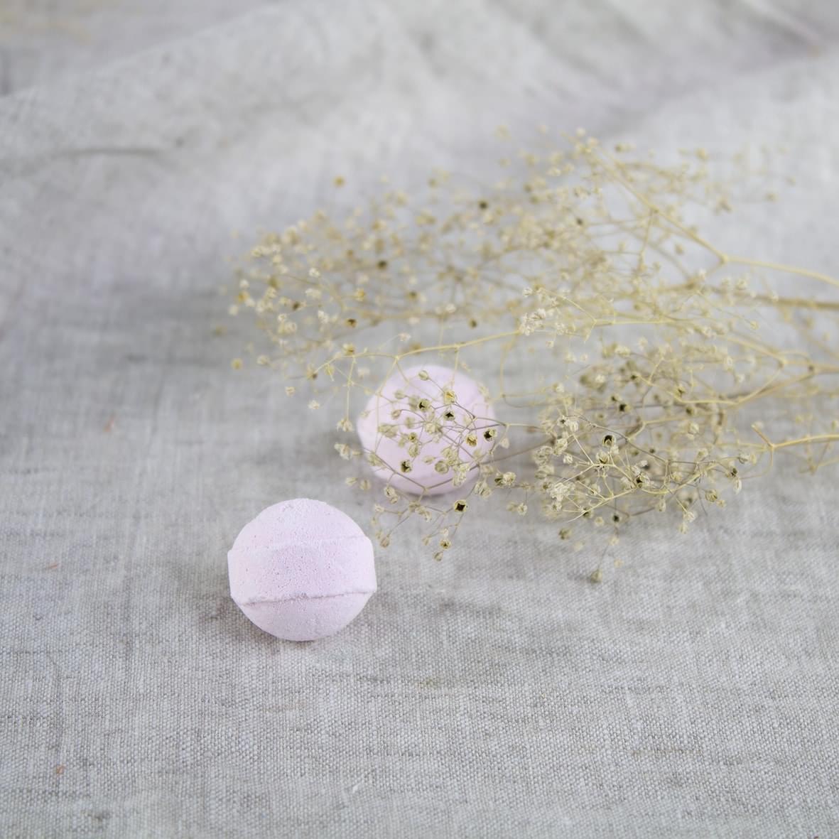 Steek 2 bruisballen in een stolpje/potje, decoreer met een droogbloemetje en personaliseer met een vinyl sticker