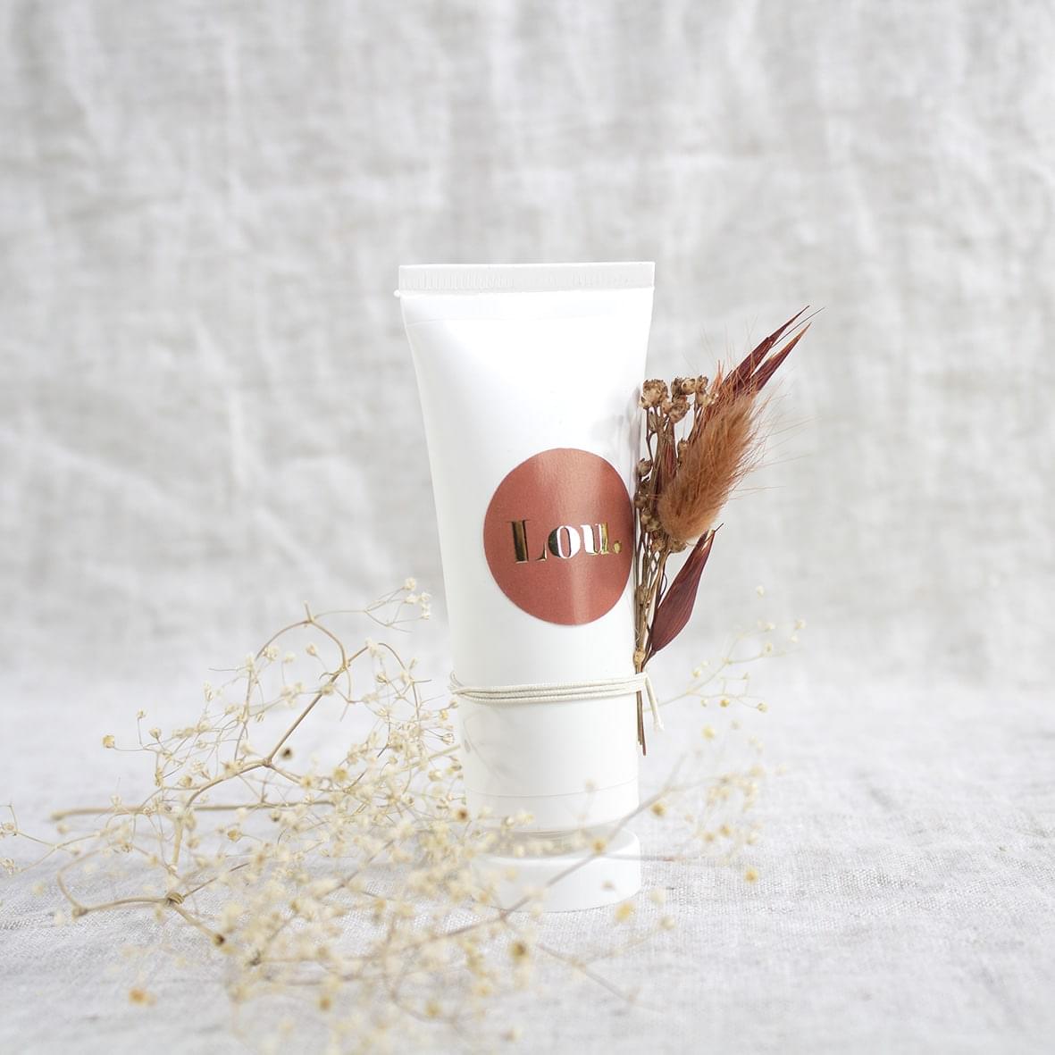 De tube heeft een offwhite kleur. Werk af met een ronde sticker of een vinyl sticker.