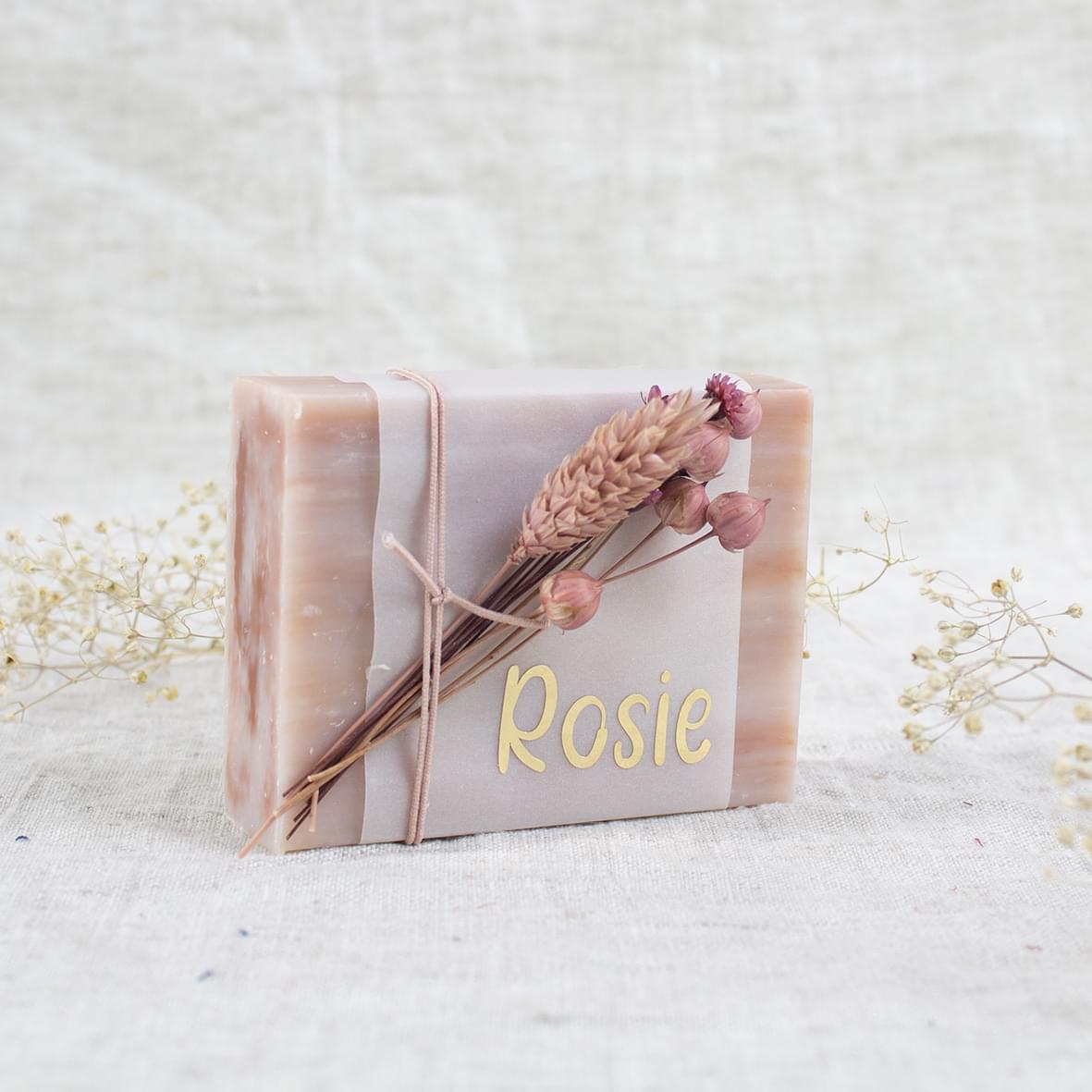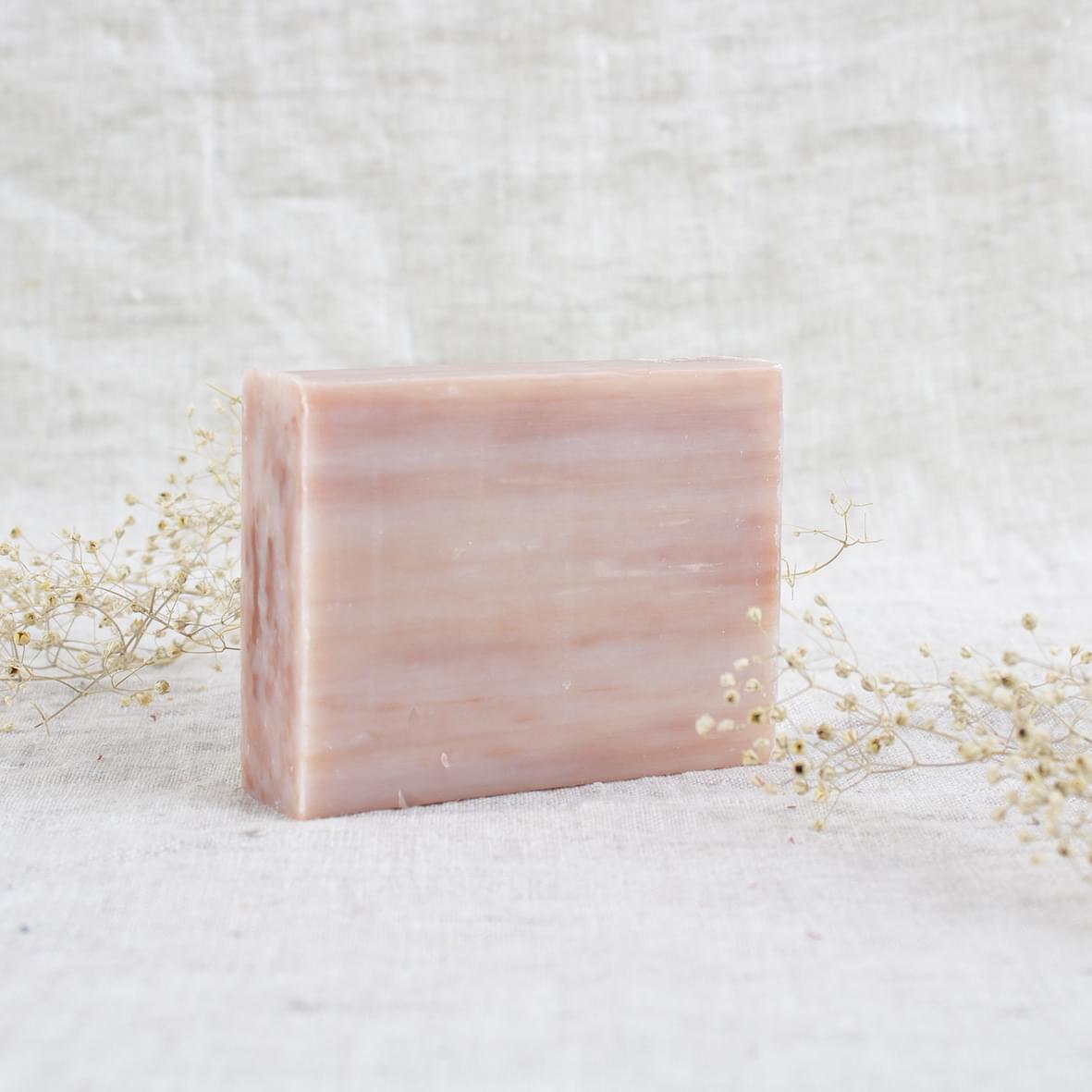 Zeepje van 95g in een prachtige zachte roze/bordeaux/ruby kleur.