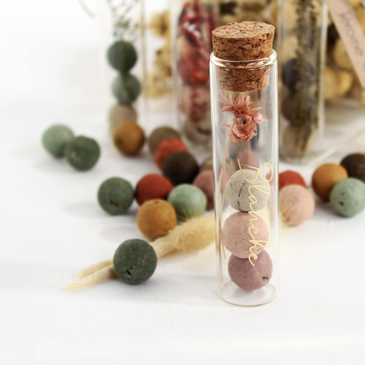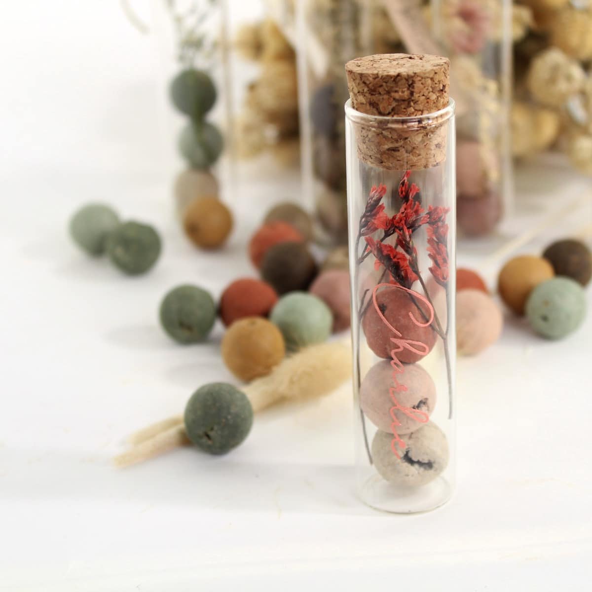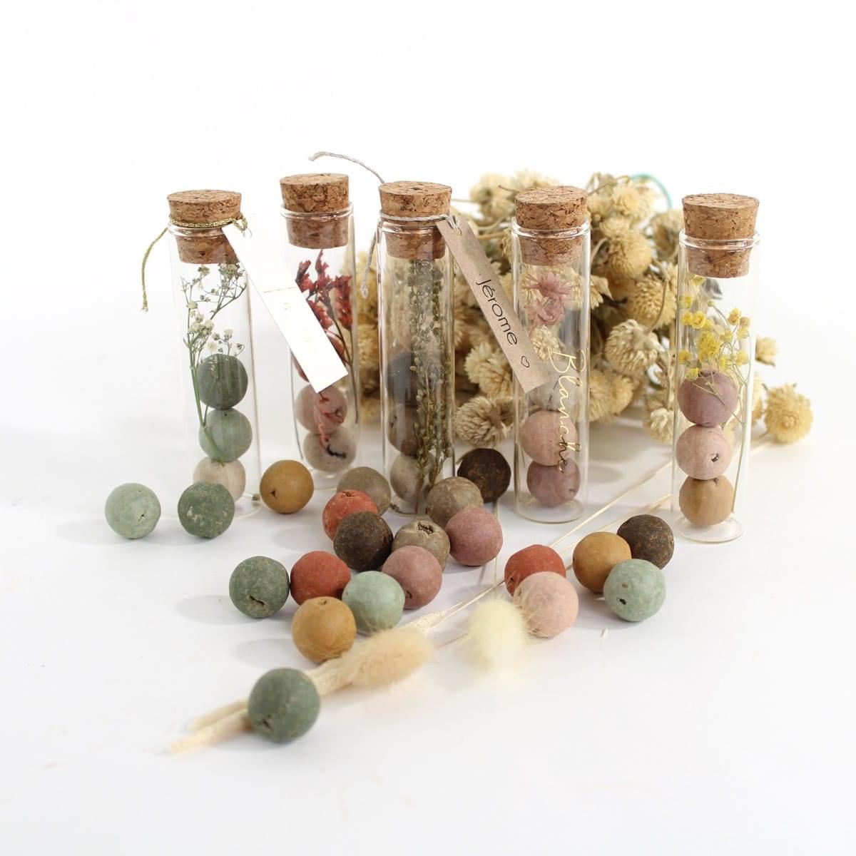 Verpak ze bijvoorbeeld in een proefbuisje, een cotton bag of een terracotta schaaltje