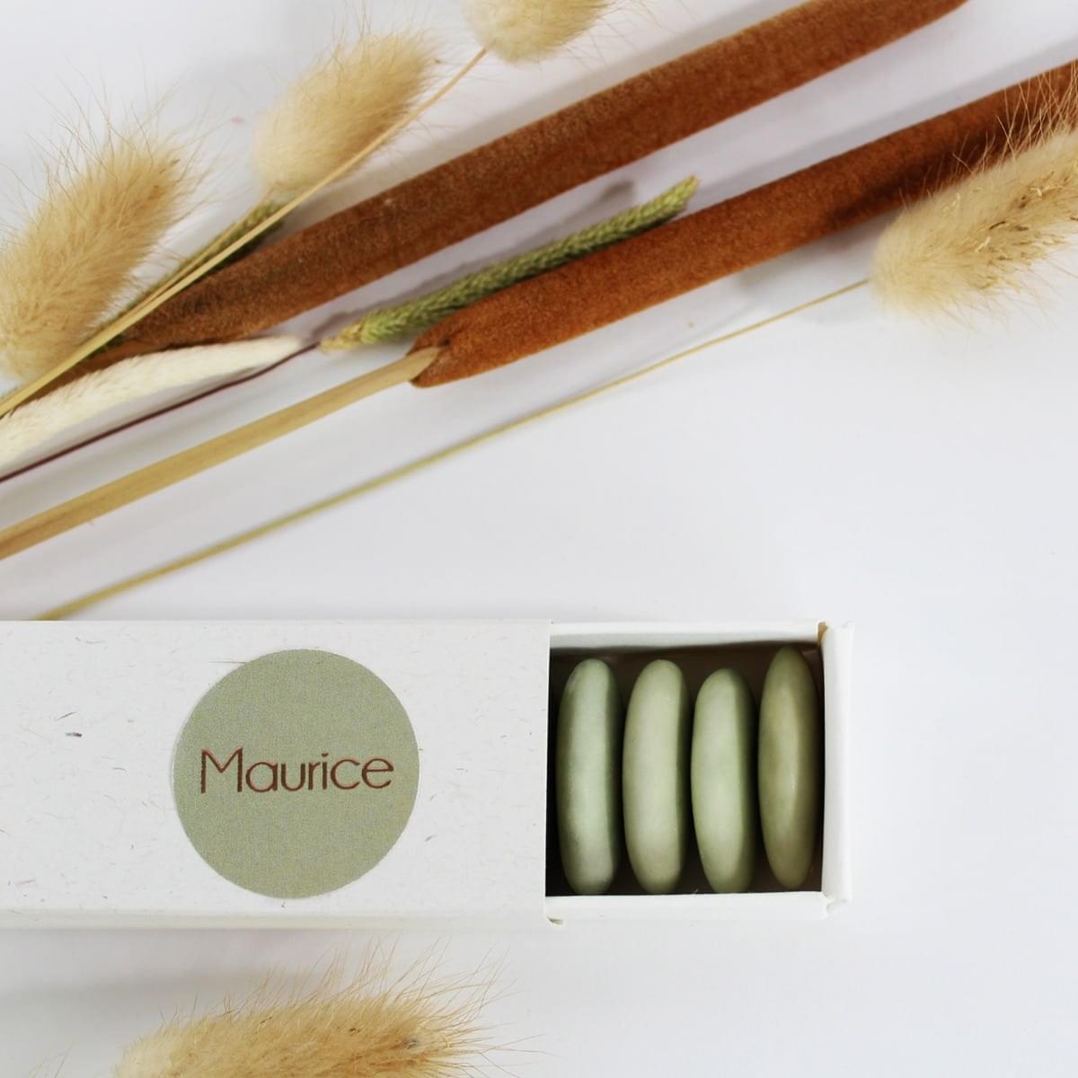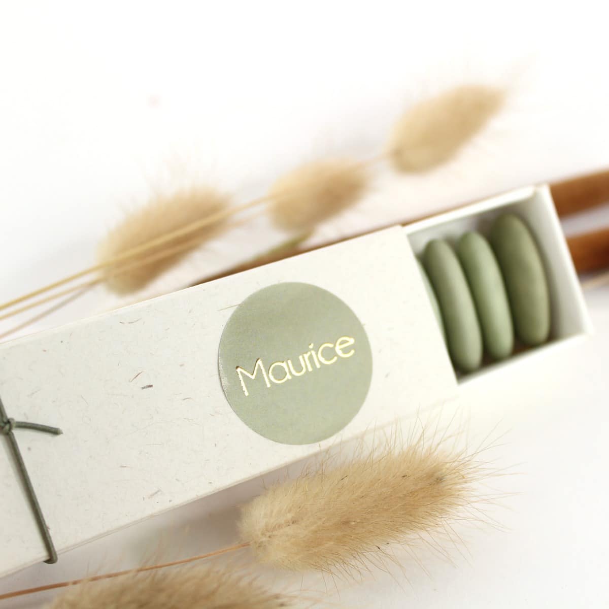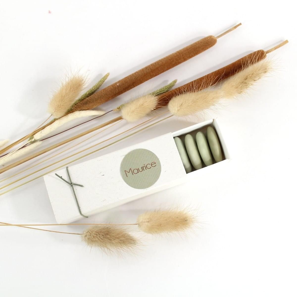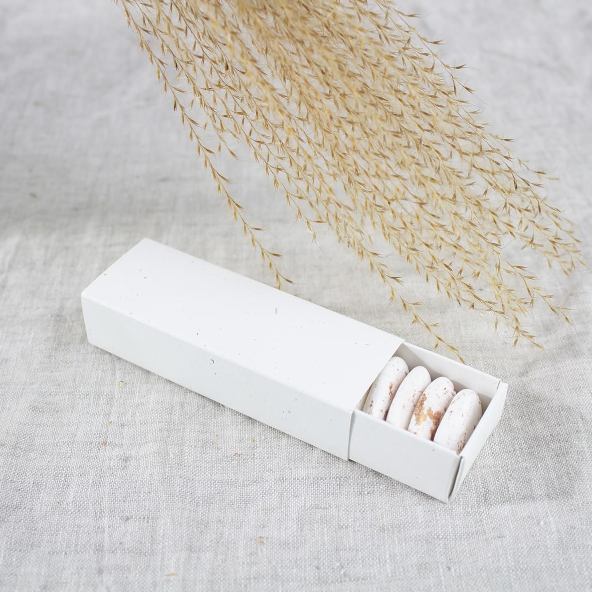 De suikerbonen passen mooi op een rijtje in het doosje.