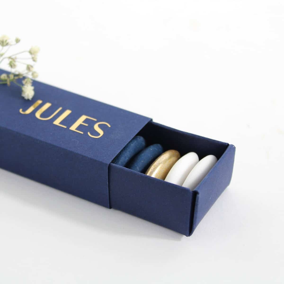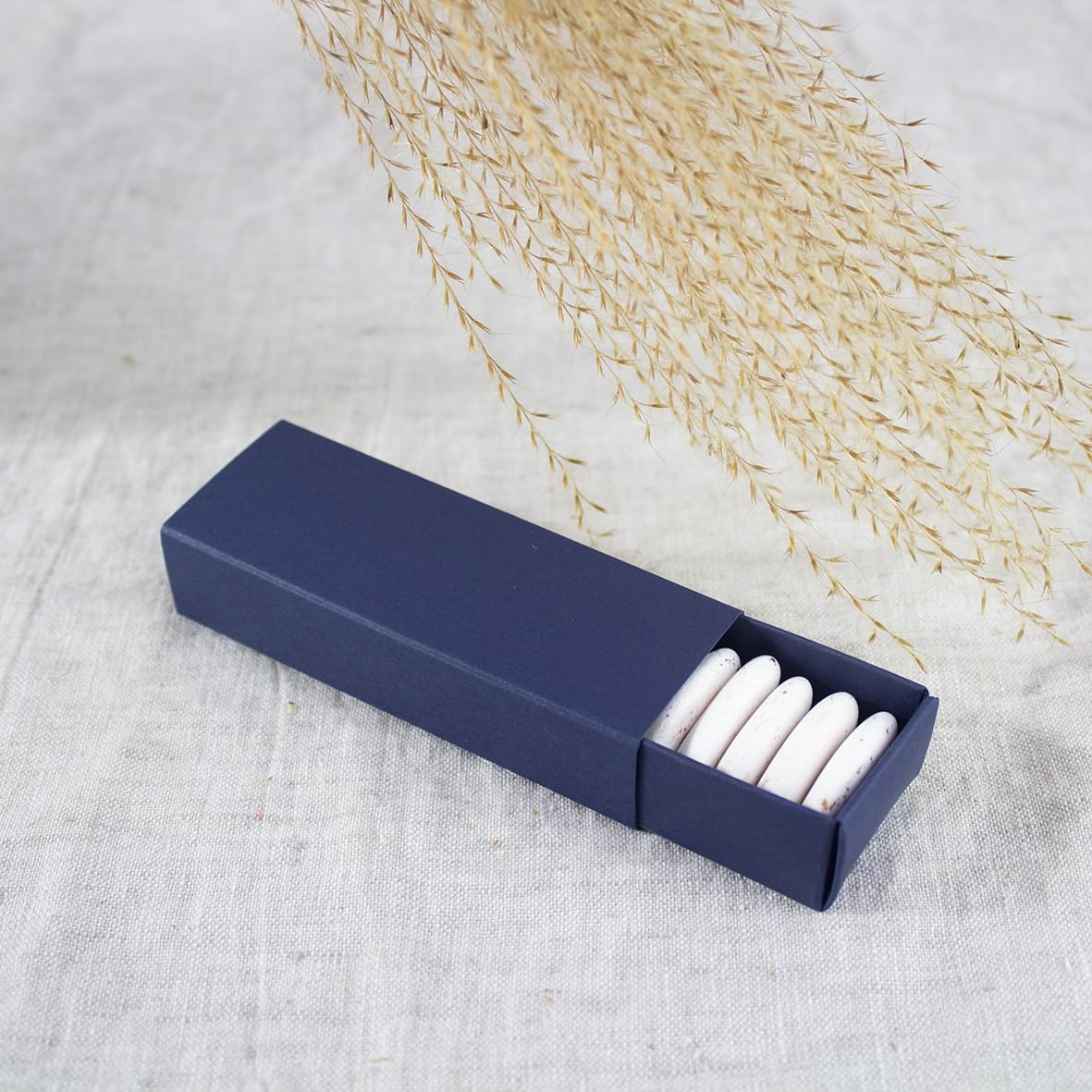 De suikerbonen passen mooi op een rijtje in het doosje.