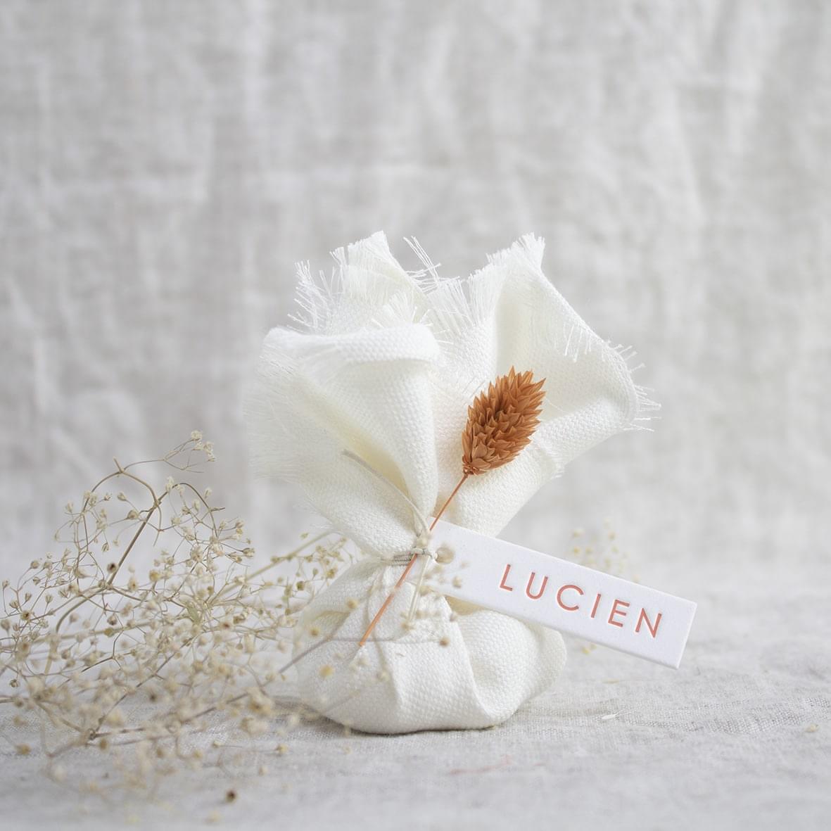 Werk af met een touwtje of elastiek. Ga voor een (houten) label en knoop een bloemetje eraan.